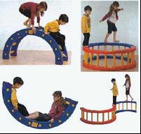 平衡步道:由塑柄横杆组成的步道,每组4串4种颜色,可相互串边,让孩子在上面尽情爬、走、跑、跳刺激孩子脚底神经及全身触觉感应。